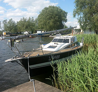 Jacht został wybudowany w oparciu o kadłub jachtu typu Mak 707.